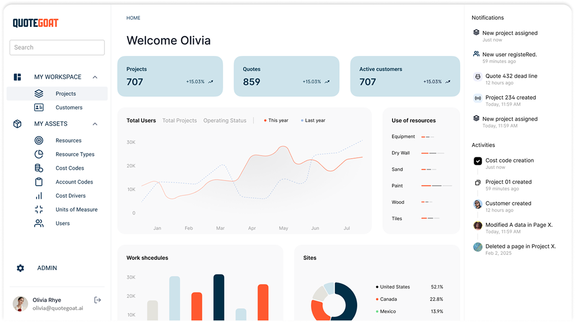 QuoteGoat isn't just another AI construction software. It is purpose-built AI construction estimating software designed to transform your bid process. Our intelligent engine automates cost rollups, applies markups, and flags scope risks and omissions before you submit. Move from manual spreadsheets to accurate, defensible estimates, all in one centralized platform built specifically to reduce your financial risk and protect your margin.